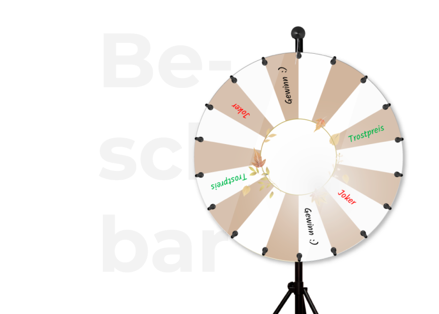 Ob beschreibare Glücksräder oder austauschbare Scheiben, unsere Glücksräder sind vielseitig und passen sich durch Ihre besonderen Merkmale besonders gut an jede Situation an.