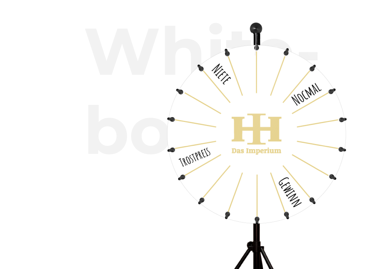 Wir bieten nicht nur 2 Jahre Garantie auf unsere Flabber und Pins, wir bieten Glücksräder für Jahrzehnte. Als Glücksrad-Manufaktur produzieren wir als einer der führenden Glücksrad-Hersteller schon seit über zehn Jahren qualitäts- u. langlebige Glücksräder nach Maß. Sie können von uns Glücksräder mit leichtem Aufbau, witterungsbeständig hoher Standfestigkeit mit Stahlstativ erwarten.