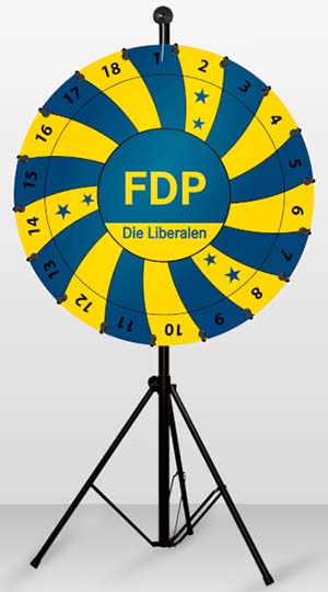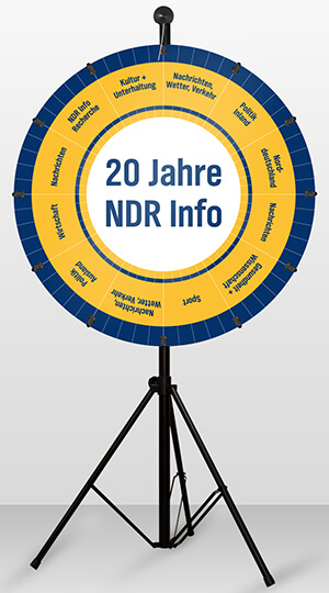 - 18 Felder – auf Wunsch auch mehr oder weniger Glücksrad-Felder möglich