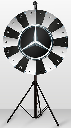 Unsere Glücksrad Doppel Magnet 90 cm hat eine feststehende Frontscheibe für Ihr Logo und eine drehende rückwärtige Scheibe für das Gewinnspiel. Beide Scheiben können magnetisch sein, je nach Ihren Wünschen. Dadurch ergeben sich viele spannende Gestaltungs- und Gewinnmöglichkeiten und Ihre Firma ist immer präsent durch das feststehende Frontlogo.