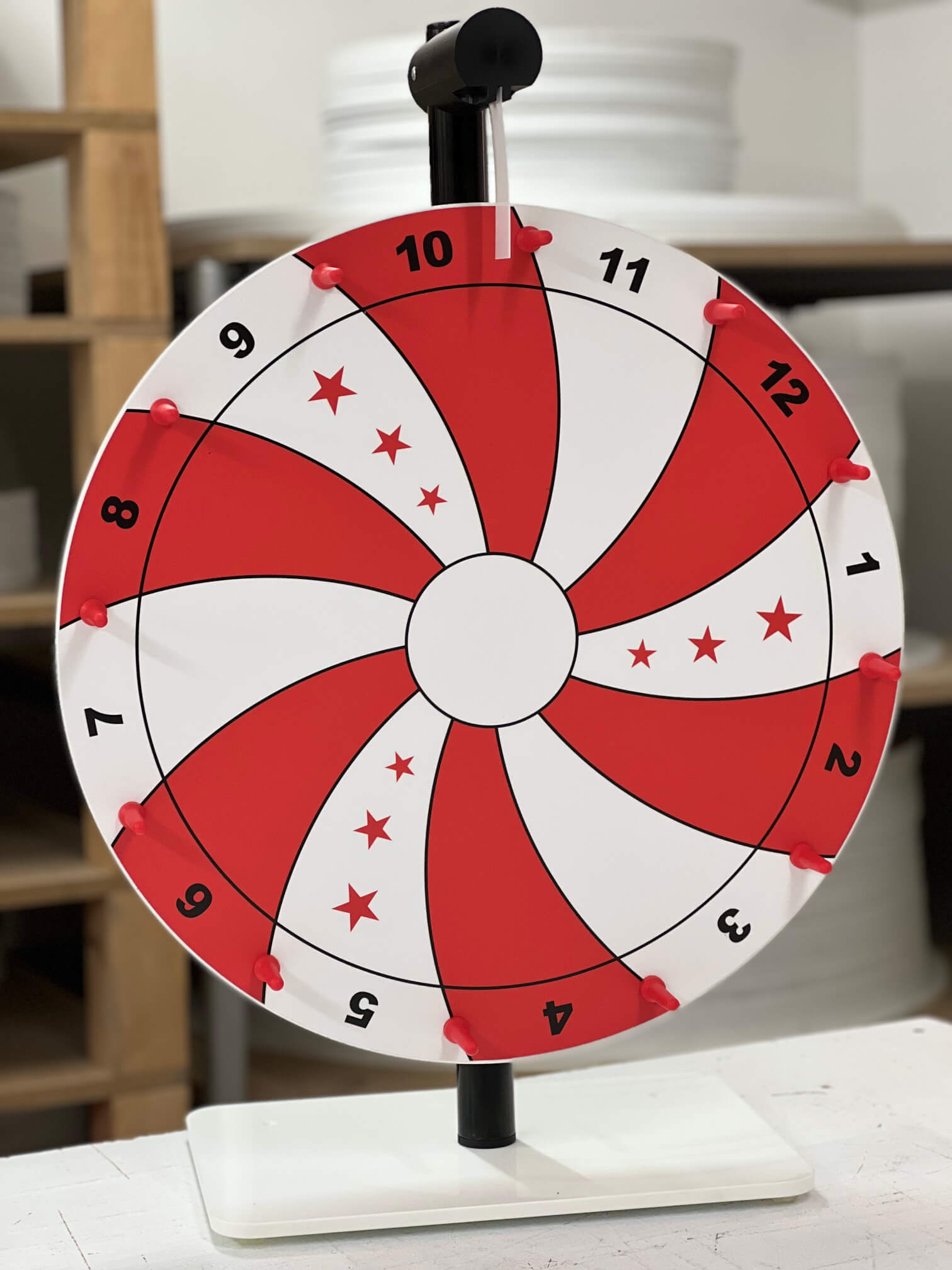 Ein kleines Glücksrad für Ihre Ladentheke oder Ihren Messestand? Kein Problem, unser Tisch-Glücksrad Basic ist genau das Richtige für Sie. Sie können das 50 cm / 60 cm-Glücksrad individuell gestalten – von der Feldanzahl, über die Farben, bis hin zu Texten und Zahlen. Als Hersteller sind uns keine Grenzen gesetzt. Unsere Tisch-Glücksräder sind durch ihre geringe Größe sehr leicht und somit einfach zu transportieren. Dann kann das Glücksrad aufgestellt werden und man kann direkt loslegen. Bestellen Sie noch heute Ihr individuelles Tisch-Glücksrad Basic für einen soliden Werbeauftritt.