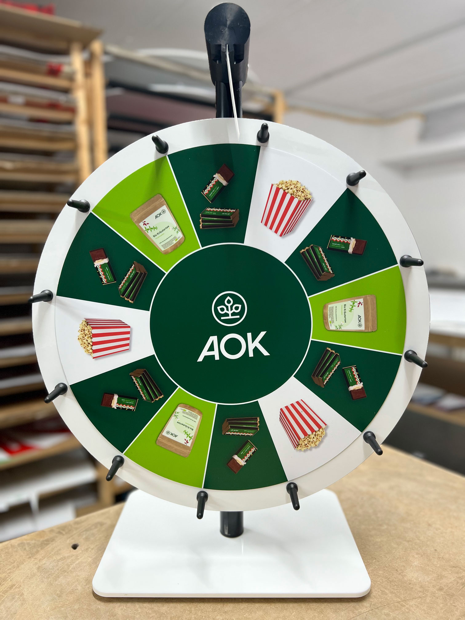 - 12 Felder – auf Wunsch auch mehr oder weniger Glücksrad-Felder möglich
