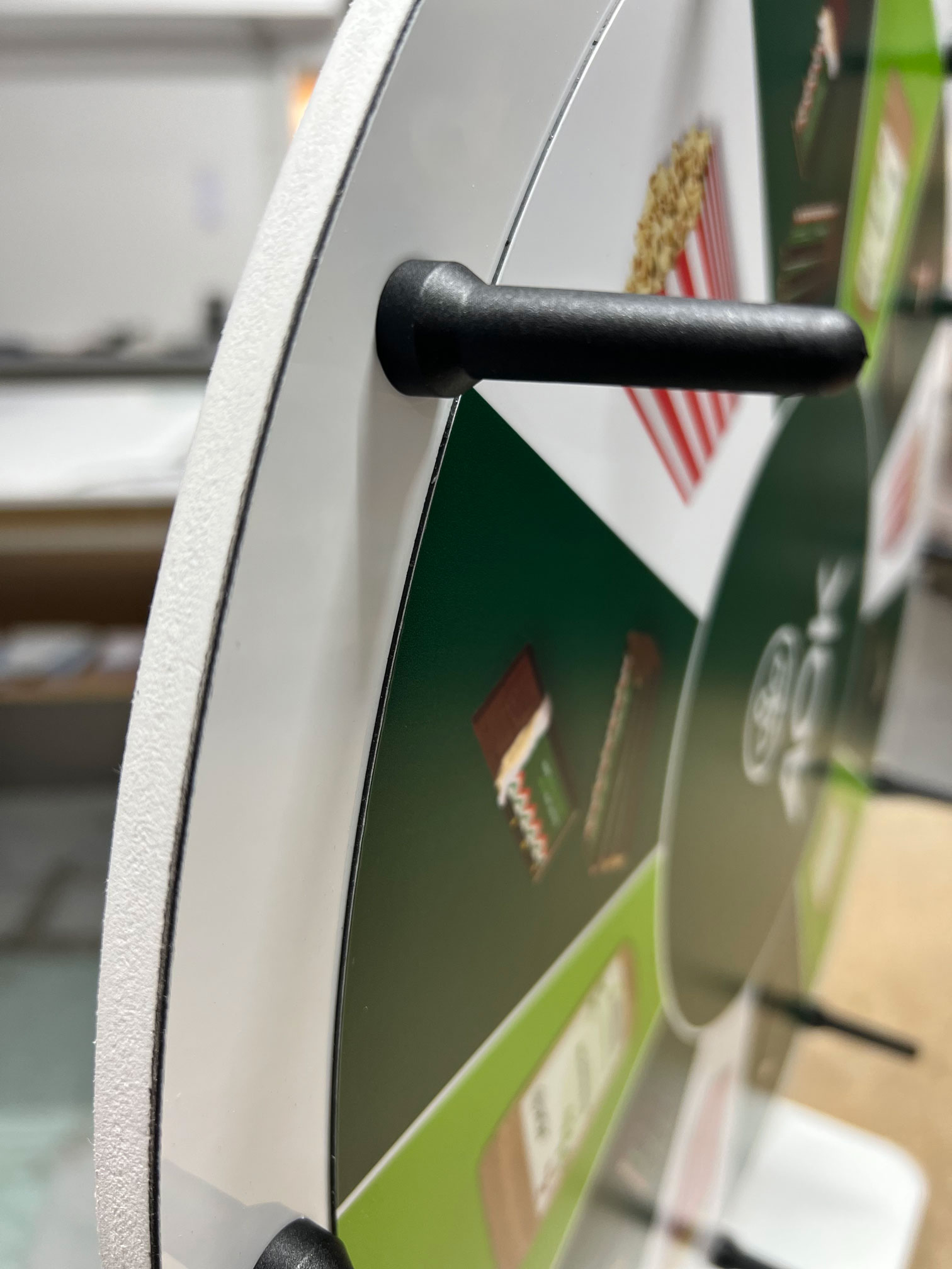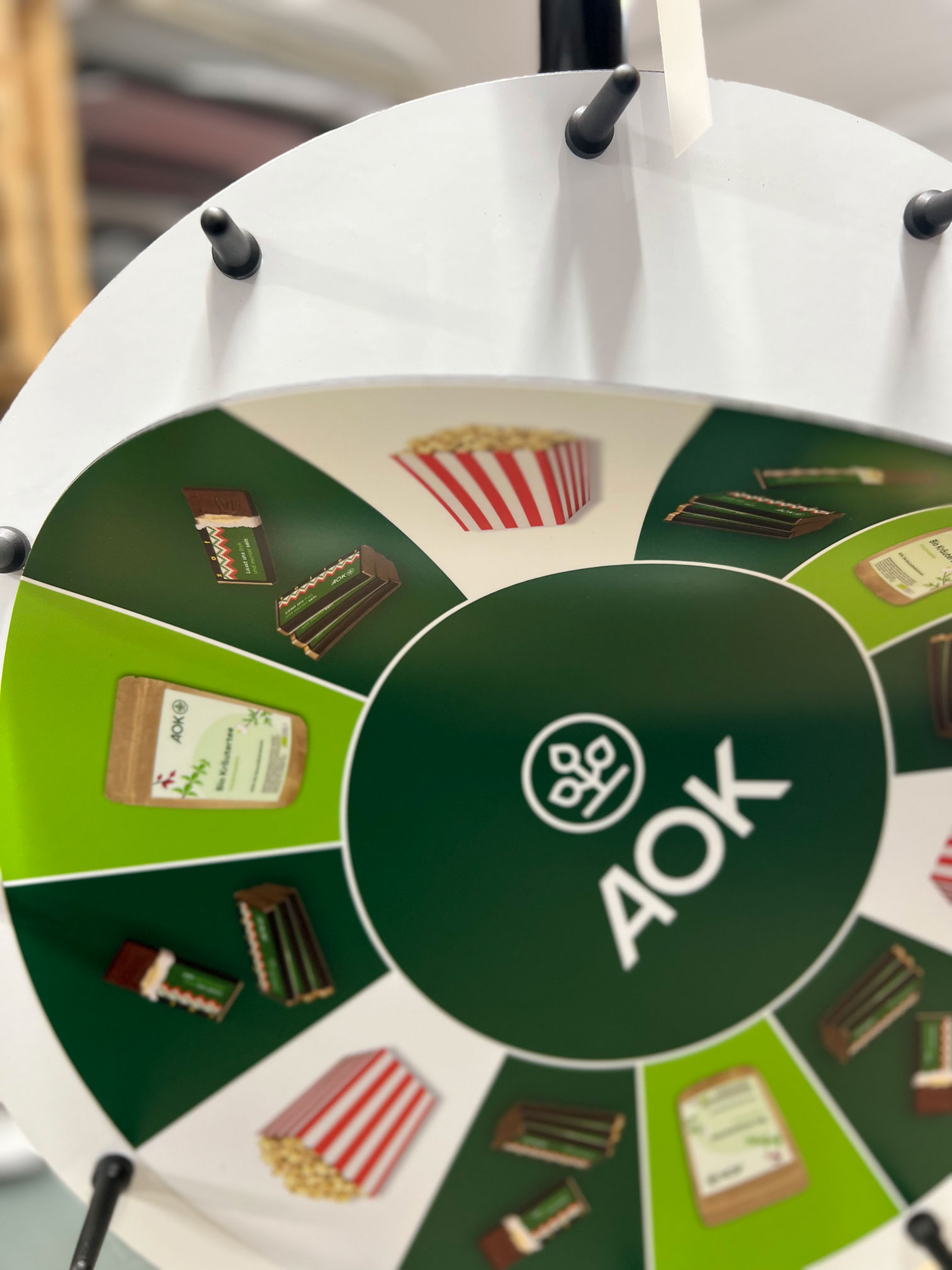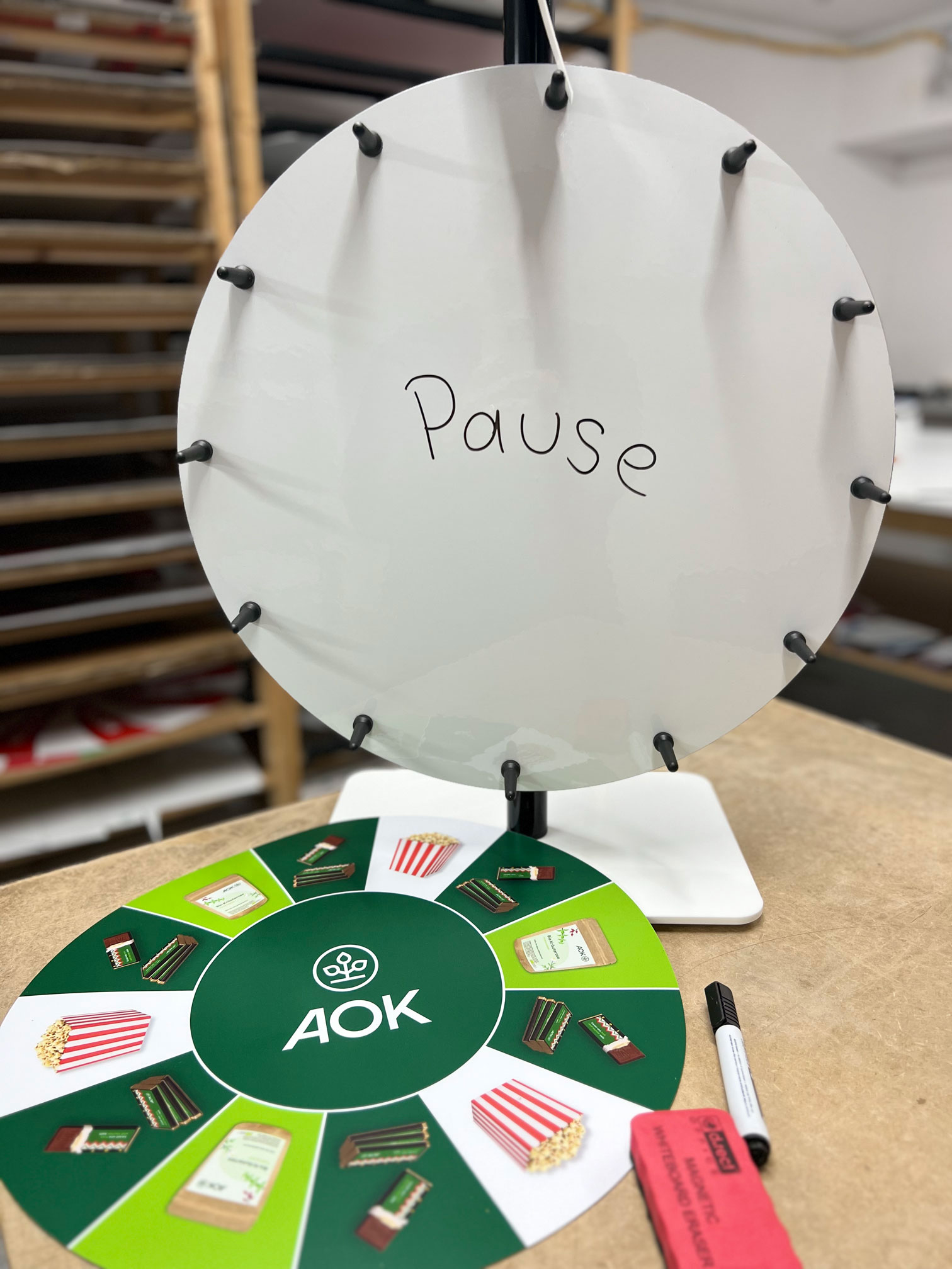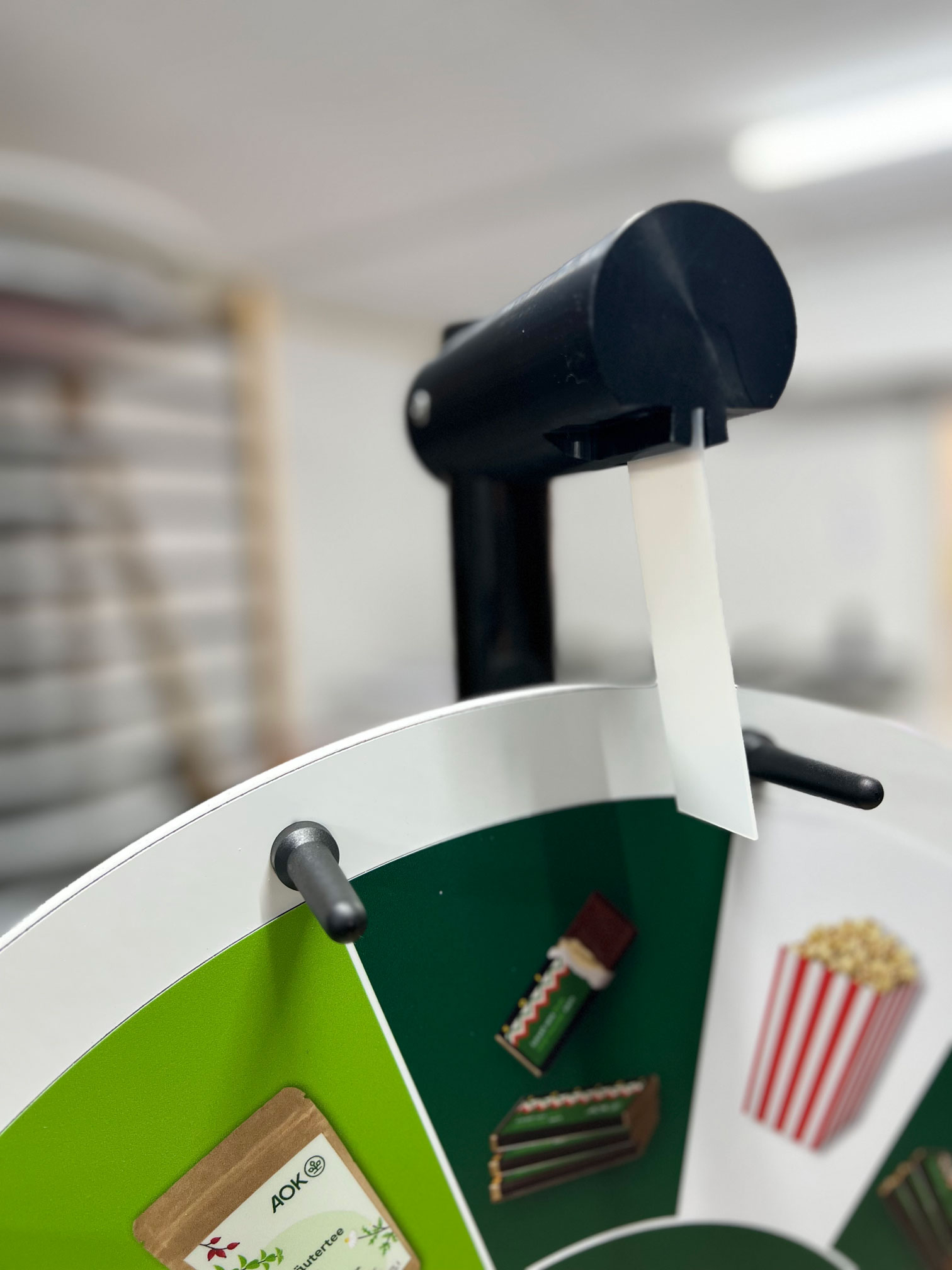 Ein kleines Glücksrad für Ihre Ladentheke oder Ihren Messestand? Kein Problem, unser Tischglücksrad Wechselmotiv Magnet ist genau das Richtige für Sie. Sie können das 50 cm / 60 cm-Glücksrad individuell gestalten – von der Feldanzahl, über die Farben der Pins. Das Tischglücksrad Wechselmotiv Magnet hat ein magnetisches Motiv, welches gewechselt/getauscht werden kann, das ermöglicht eine große Flexibilität. Passen Sie damit Ihr Tischglücksrad jederzeit neu an. Als Hersteller sind uns keine Grenzen gesetzt. Unsere Tischglücksräder sind durch ihre geringe Größe sehr leicht und somit einfach zu transportieren. Dann kann das Glücksrad aufgestellt werden und man kann direkt loslegen.